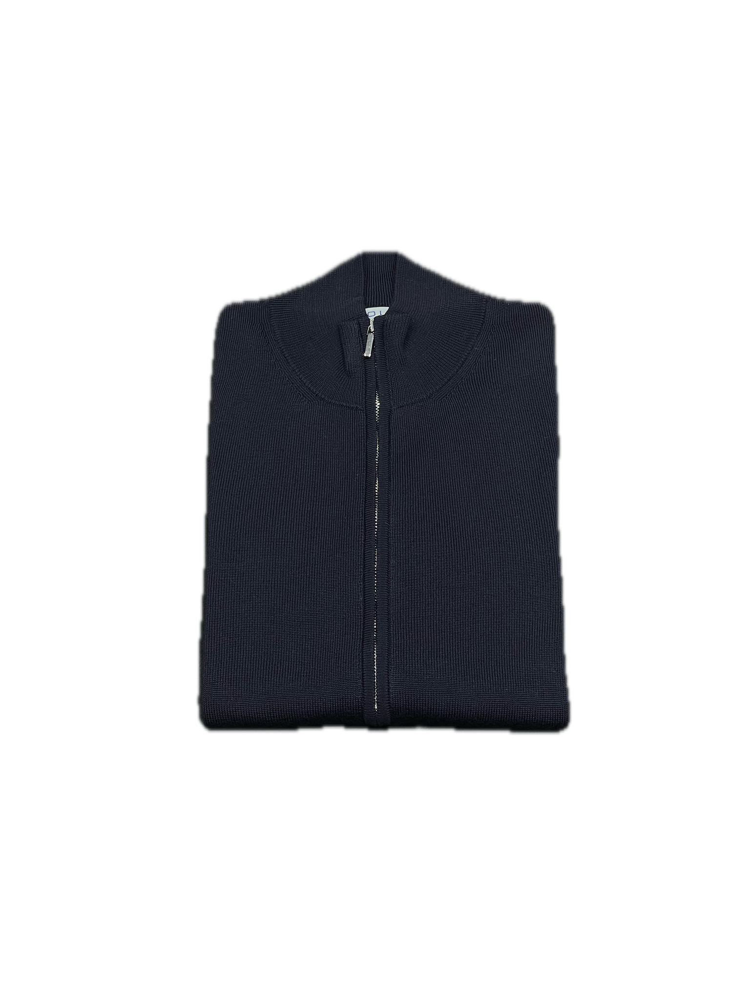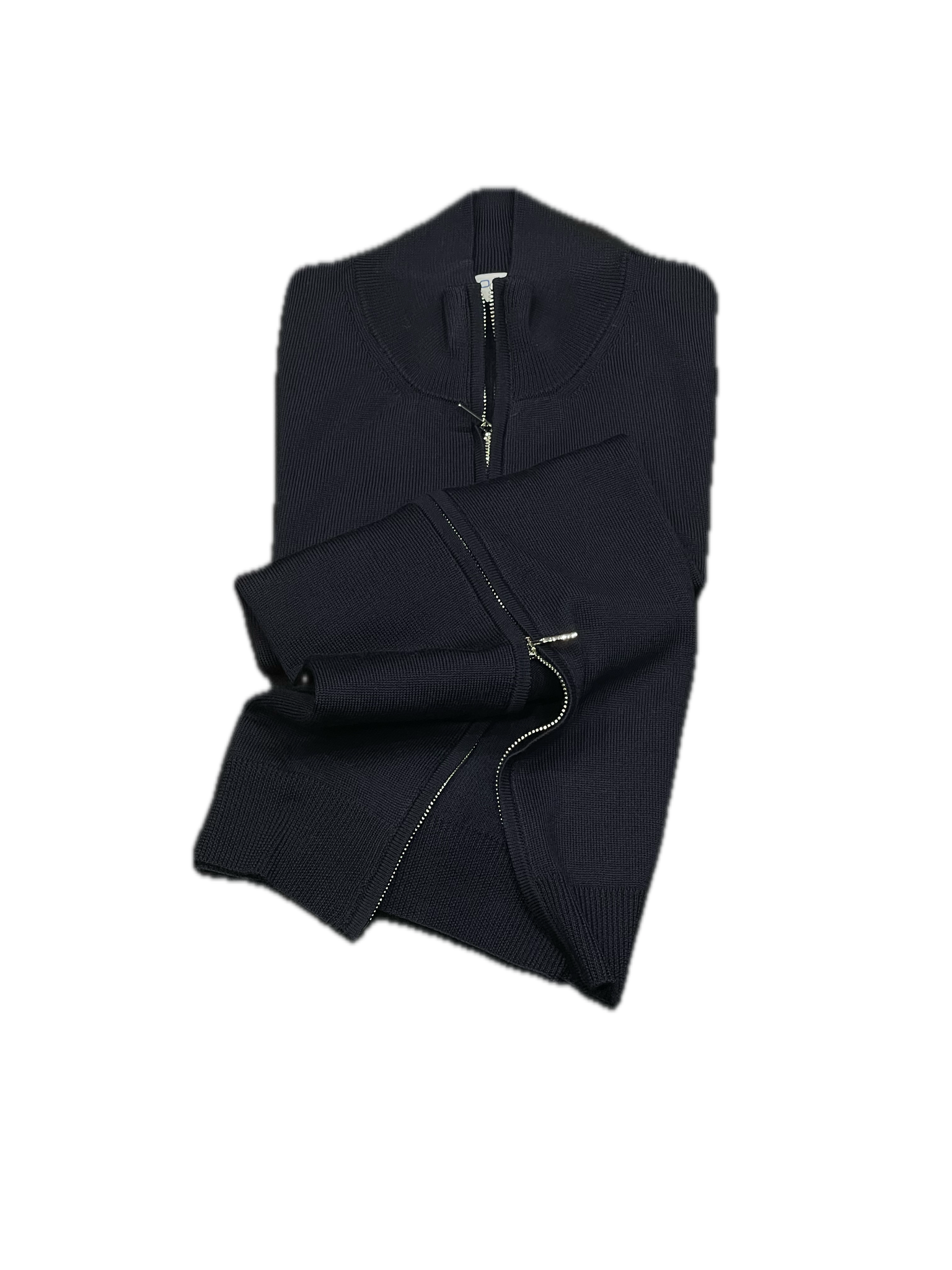 2 ply 100% merino yarn in Navy Blue, with a double ended zip.